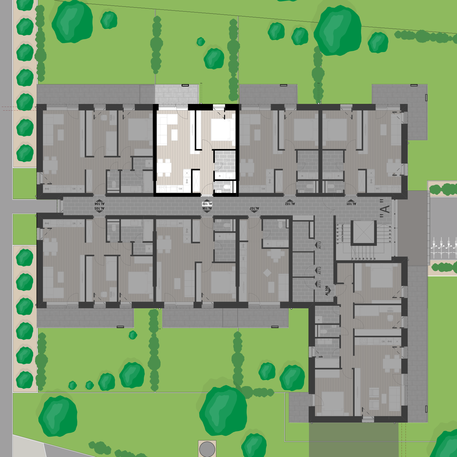 Az AL103 lakás az 1. emeleten található, 41,86 m2 területű és 5,63 m2 erkéllyel rendelkezik. Az ára 53.848.400 Ft.