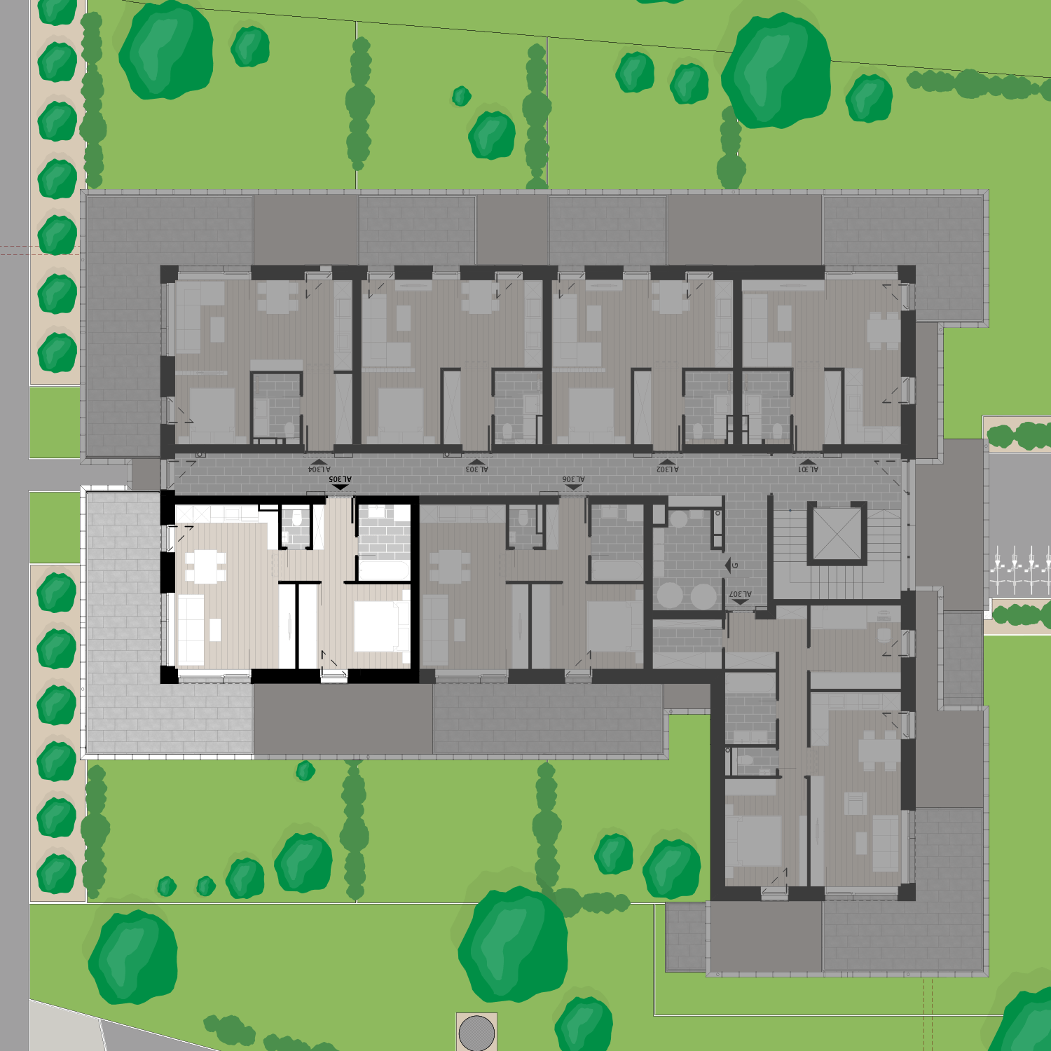 Az AL305 lakás a 3. emeleten található, 48,33 m2 területű és 32,3 m2 erkéllyel rendelkezik. Az ára 61.520.470 Ft.