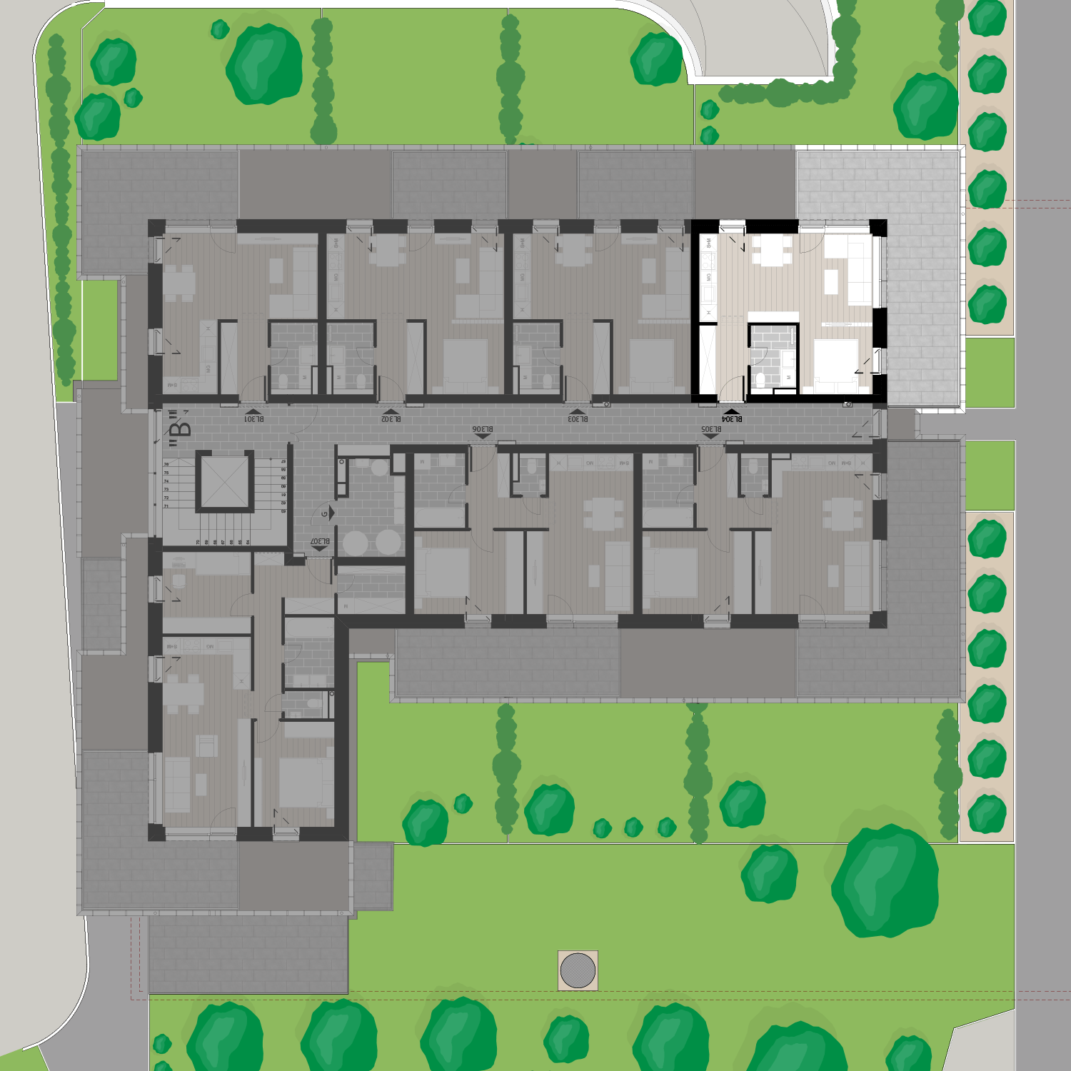 Az BL304 lakás a 3. emeleten található, 37,11 m2 területű és 32,3 m2 erkéllyel rendelkezik. Az ára 47.063.500 Ft.