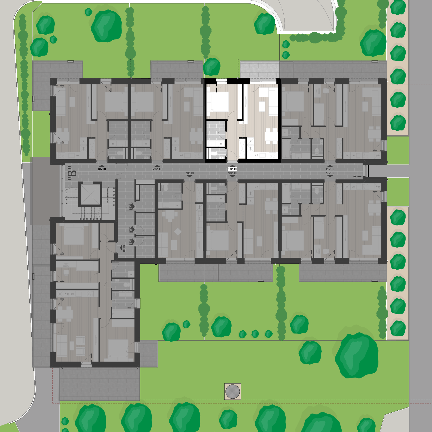 Győr frekventált városrészében, Szabadhegyen 56 lakásos, 4 szintes társasházban 25 és 80 m2 közötti lakások kerülnek megépítésre.