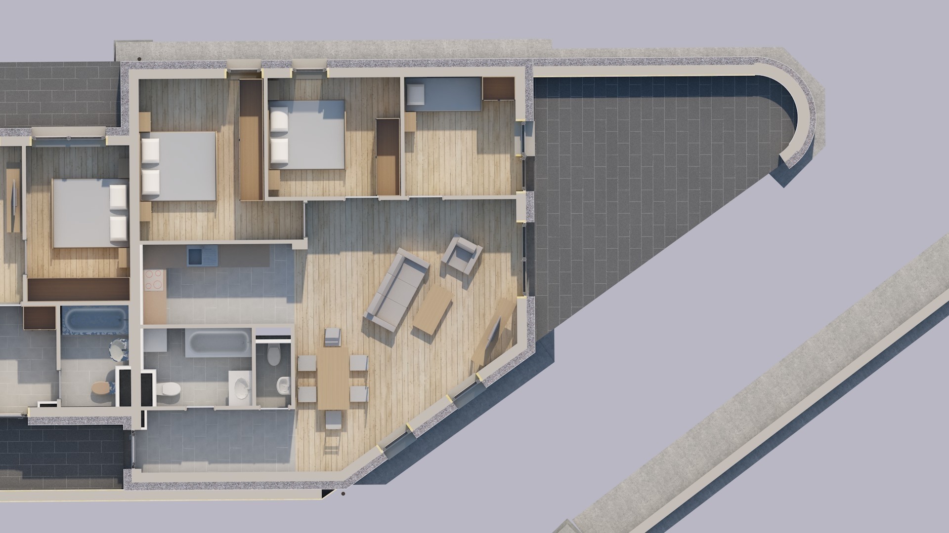 A földszinten 16 db garázs, 36 db fedett parkoló és 28 db kültéri parkoló található, ezekből opcionálisan választható, de legalább 1 db gépkocsi beálló vásárlása kötelező. Ezen kívül minden szinten privát tároló vételére is van lehetőség.