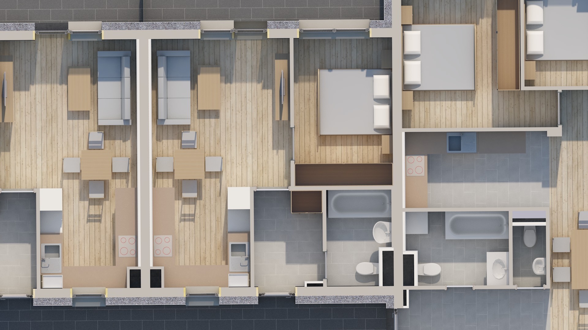 A földszinten 16 db garázs, 36 db fedett parkoló és 28 db kültéri parkoló található, ezekből opcionálisan választható, de legalább 1 db gépkocsi beálló vásárlása kötelező. Ezen kívül minden szinten privát tároló vételére is van lehetőség.