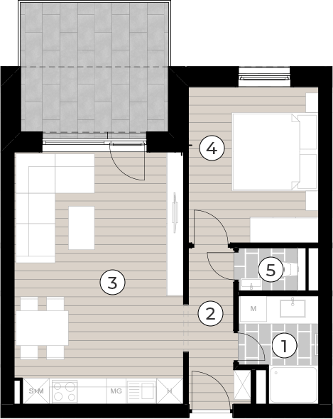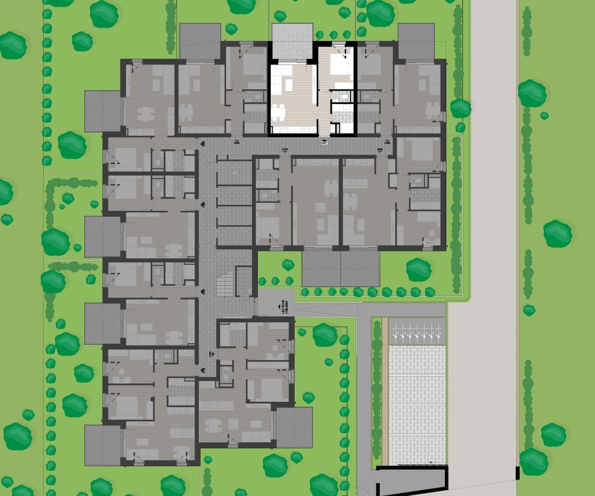 A társasház földszintjén található L7 lakás 43,55 m2 nettó alapterületű, melyhez 10,61 m2 terasz és 30,9 m2 kert tartozik. Ennek a bruttó 51.371.782,- Ft-os ára fűtéskész állapotra vonatkozik. A lakáshoz egy udvari gépkocsi beálló is tartozik bruttó 1,5 M Ft összegben, amelyet az előbb említett vételár nem tartalmaz. Igény esetén még egy beálló megvásárlására is van lehetőség és egy tároló megvétele is lehetséges.